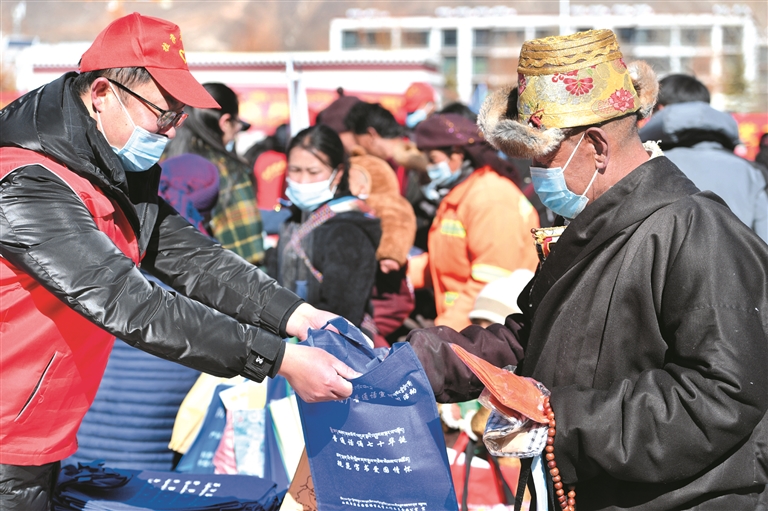 隨著春節(jié)、藏歷新年腳步越來越近,熱熱鬧鬧的年味越來越濃。2月1日,由拉薩市委宣傳部牽頭,市文聯(lián)、市教育局、市司法局、市衛(wèi)健委等16家單位走進墨竹工卡縣新時代文明實踐中心,開展文化科技衛(wèi)生法律愛國愛教服務(wù)“五下鄉(xiāng)”活動,為當?shù)厝罕娝蜕闲履甓Y物。