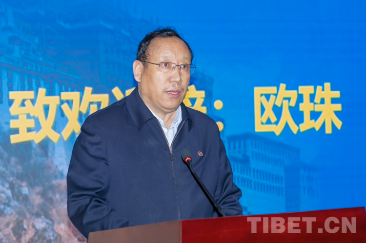 圖為西藏民族大學(xué)黨委書(shū)記歐珠致歡迎辭