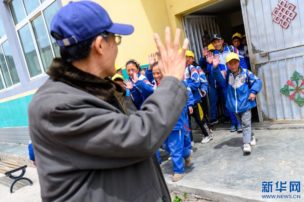 5月4日,在西藏昌都市類(lèi)烏齊縣長(zhǎng)毛嶺鄉(xiāng)第一小學(xué),學(xué)生們向李純民道別。新華社記者 劉金海 攝