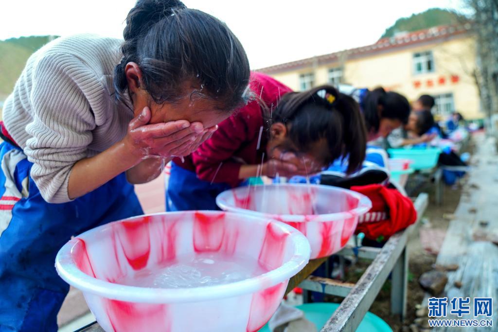 4月30日,在西藏昌都市類(lèi)烏齊縣桑多鎮(zhèn)第二小學(xué),學(xué)生們用熱水洗漱。這套熱水設(shè)施由李純民發(fā)起的“齊興”助學(xué)獎(jiǎng)勵(lì)基金捐助。新華社記者 黃臻 攝