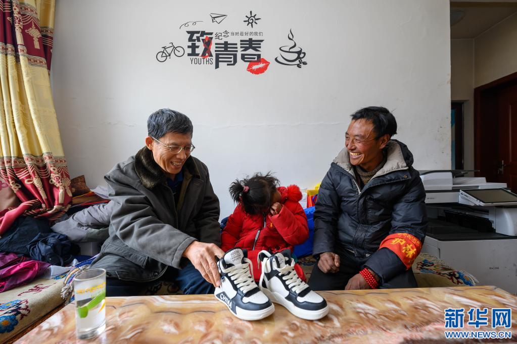 5月3日,在西藏昌都市類(lèi)烏齊縣伊日鄉(xiāng)小學(xué),扎西措姆(中)在父親帕巴澤仁(右)的陪伴下,接受李純民(左)贈(zèng)予的一雙為她專(zhuān)門(mén)定制的新鞋。扎西措姆自幼患有足部殘疾,穿普通鞋子無(wú)法舒適行走。2020年,李純民個(gè)人出資為扎西措姆定制了一雙鞋。不久前,得知扎西措姆的鞋子穿破后,李純民再次為她定制了一雙新鞋。新華社記者 劉金海 攝