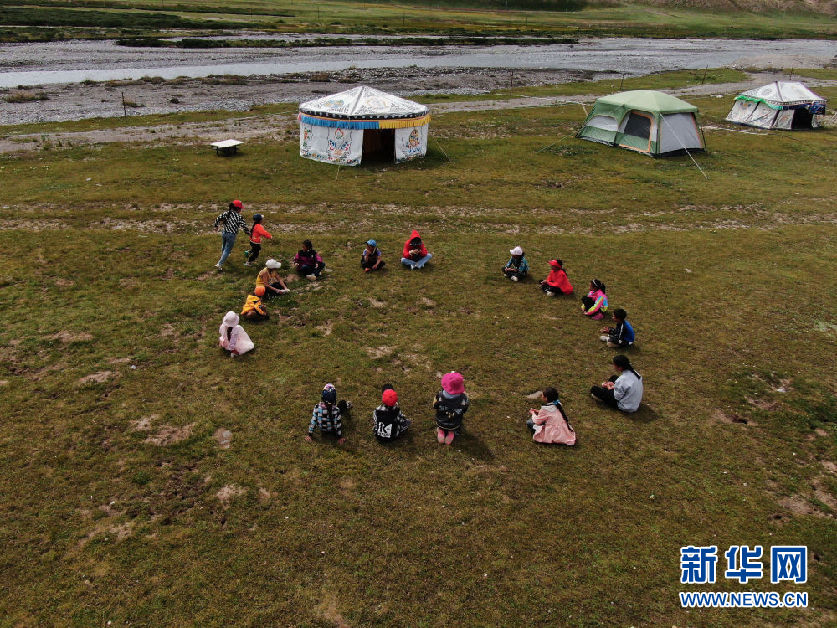暑假里,在青海省果洛藏族自治州瑪沁縣下大武鄉(xiāng)年扎村夏季草場的“育苗加油站”里,孩子們唱歌、繪畫、游戲,享受快樂時光。