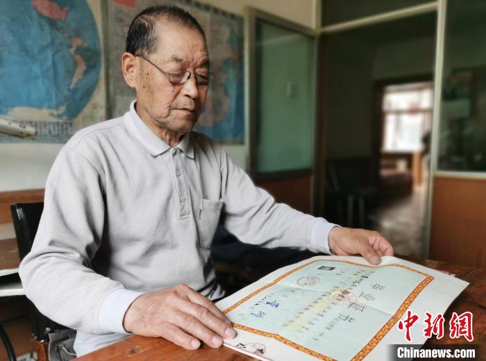 圖為朱汝完整理個人在浙江省永康中學初中部的畢業(yè)證書?!?zhí)砀?攝