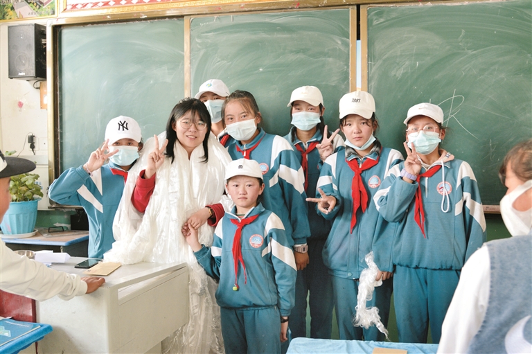 圖為支教結束,劉鋆鈺與達孜區(qū)孩子們的最后一節(jié)課。 拉薩融媒記者 凃 瓊攝