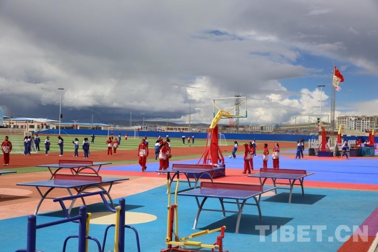 圖為西藏自治區(qū)那曲市色尼區(qū)杭嘉中學的學生們正在操場上進行各種體育活動 攝影:吳建穎