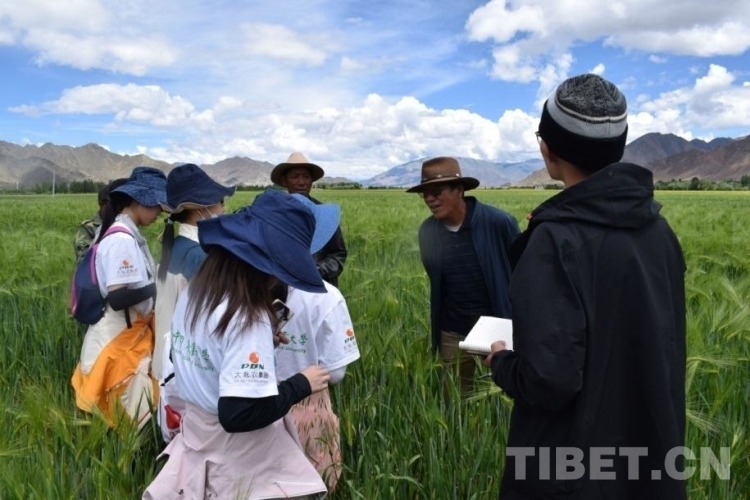 圖為中國(guó)農(nóng)業(yè)大學(xué)人文科考隊(duì)在青稞田里了解情況