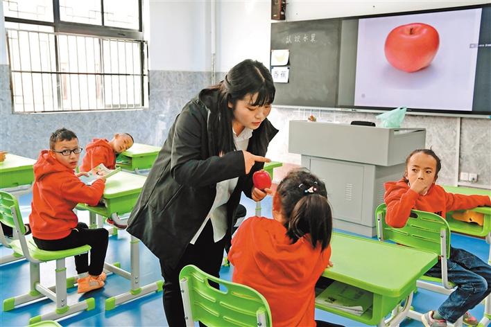 拉薩市特殊學(xué)校的老師通過圖片、實(shí)物讓孩子們認(rèn)知水果。 記者 唐斌 丹增群培 攝