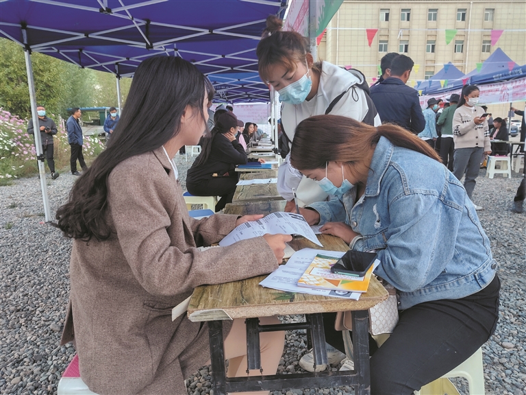 圖為高校畢業(yè)生正在填寫(xiě)求職登記表。拉薩融媒記者 拉姆次仁攝