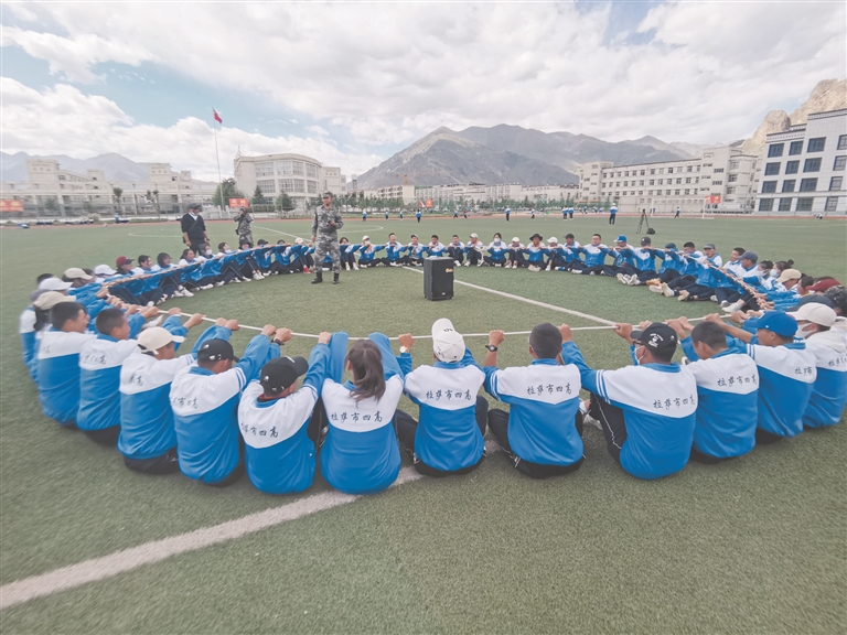 圖為動力圈游戲環(huán)節(jié),同學們合力轉圈。拉薩融媒記者 郝奕凝攝