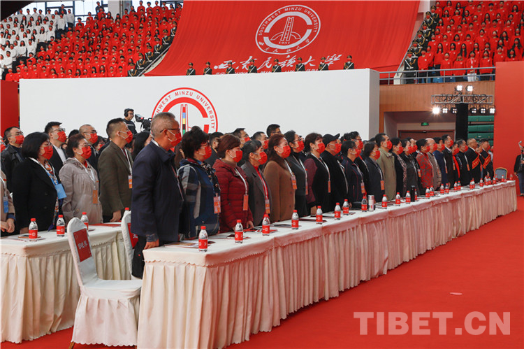 大會在雄壯的國歌聲中拉開帷幕,西南民族大學(xué)黨委書記楊敏宣布慶祝大會開始。