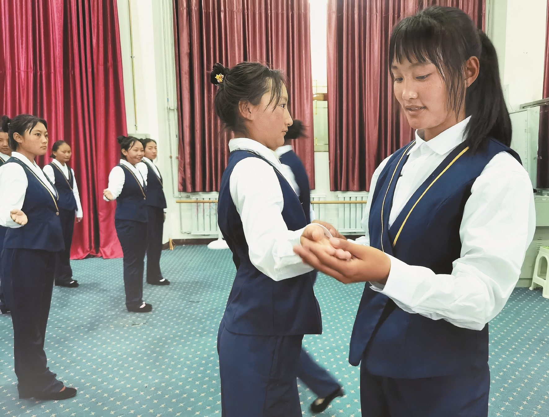 圖為拉薩二職正在對學生進行服務(wù)業(yè)從業(yè)人員培訓(xùn)。拉薩融媒記者 凃 瓊攝