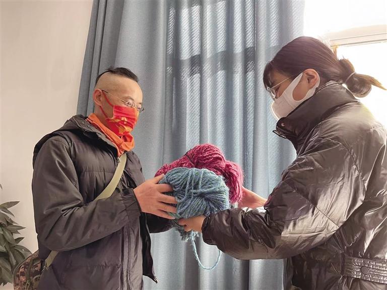 活動啟動后,有不少愛心人士前來領(lǐng)取毛線,大家精心挑選毛線的粗細、精心搭配花色,討論著針法,力爭為孩子們織出最好的針織品。