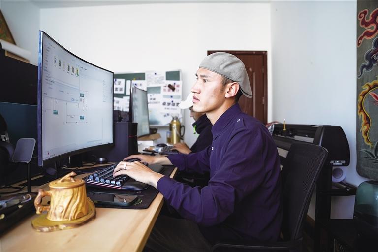 扎西巴單正在設(shè)計(jì)logo。