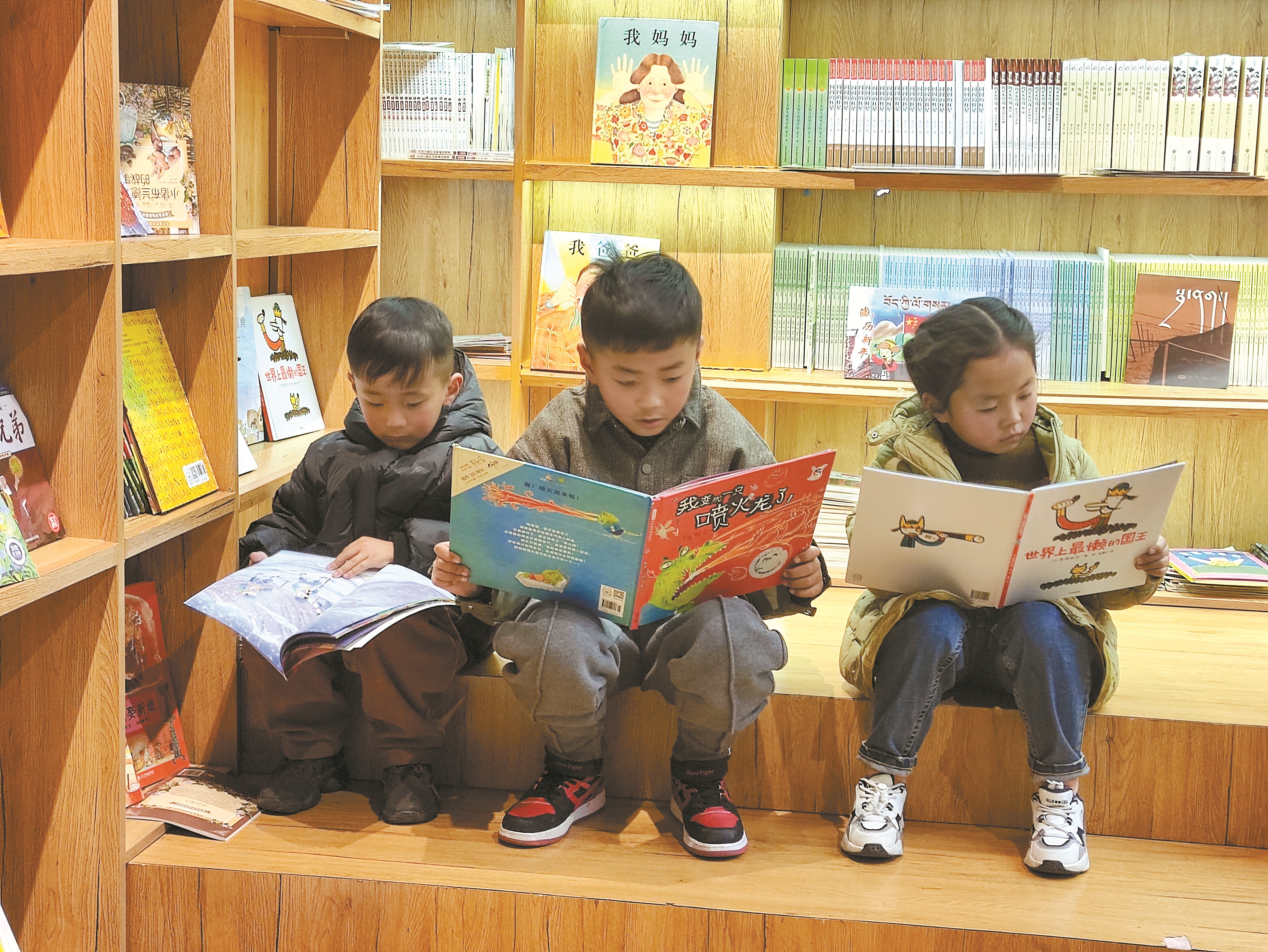 位于城關(guān)區(qū)萬達廣場三樓的時光讀書驛站,環(huán)境舒適,并開辟有專門的讀書區(qū)域,設(shè)置了桌椅,眾多讀者在這里專心學(xué)習(xí)和閱讀。該讀書驛站還開辟了兒童閱讀專區(qū),孩子們坐在一起、手里捧著圖畫書籍看得津津有味。時光讀書驛站工作人員德吉說:“因為我們書吧在一站式購物商場里,平時會有很多讀者,這兩天剛好是藏歷新年,再加上是周末,所以人很多。我們這有各種暢銷書,不管是中文還是藏文及英文書籍都很豐富。因為我們開辟了兒童區(qū),有許多供孩子閱讀的繪本,平時周末的時候,會有許多家長帶孩子來?!?/p>