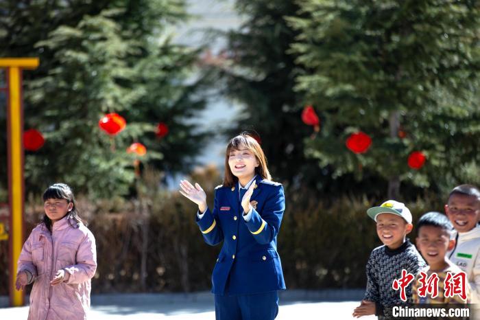 在活動(dòng)中,志愿者們首先與孩子們進(jìn)行了自我介紹,詳細(xì)了解孩子們的生活、學(xué)習(xí)情況。同時(shí),帶著孩子們開展跳繩、丟沙包、短跑等互動(dòng)活動(dòng)。隨后,藏族歌手、總隊(duì)教育宣傳處助理員索朗德吉為孩子們演唱歌曲,在動(dòng)聽的旋律中不時(shí)傳來(lái)孩子們的歡聲笑語(yǔ),其樂(lè)融融的氛圍,更是感染著在場(chǎng)的每一個(gè)人。