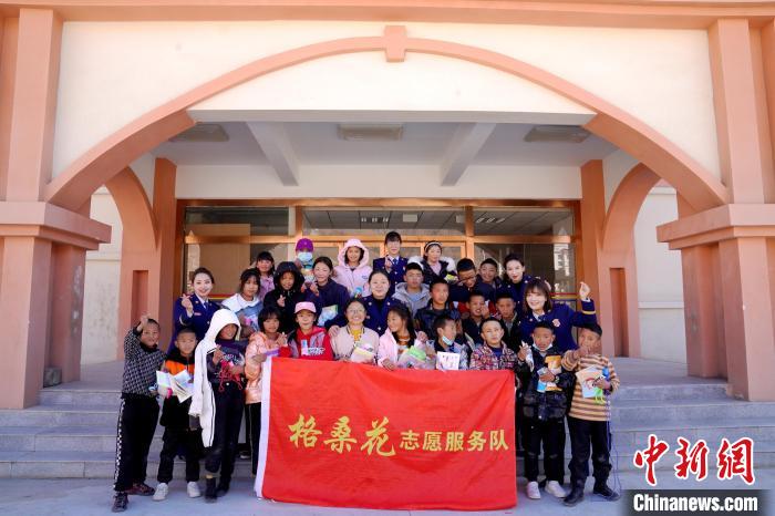 圖為志愿者給孩子們發(fā)放慰問(wèn)品?!∈└?攝
