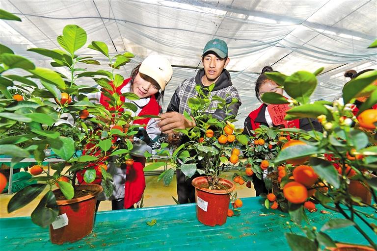 圖為西藏職業(yè)技術學院的學生在園區(qū)工作人員的指導下學習種植管理技術。記者 唐斌 攝