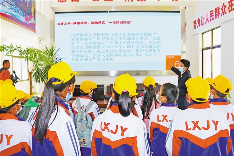 索朗旺久作為普法檢察官,根據(jù)院黨組的指示要求,他帶領其他檢察官與朗縣教育局簽訂《朗縣人民檢察院、朗縣教育局關于推進落實最高人民檢察院“一號檢察建議”的工作機制》,對學校的安全管理制度、錄用人員審查、學生法治教育、校園監(jiān)控管理、女生宿舍管理以及侵害未成年人強制報告和督導檢查等問題形成統(tǒng)一意見,針對學校安全管理、校園周邊環(huán)境綜合治理等方面當場提出口頭建議,向有關部門提出堵塞漏洞建議1份,為未成年人健康成長營造了良好的環(huán)境。
