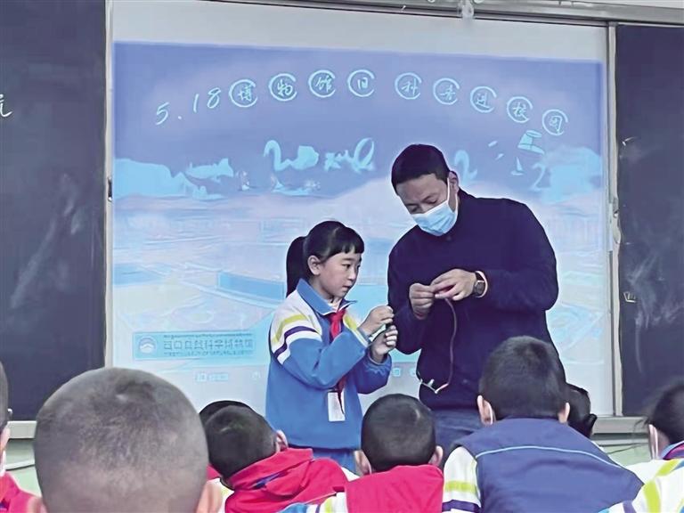 工作人員為學(xué)生們講解科普知識(shí)。記者 王靜 攝