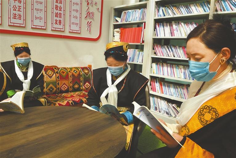 林芝市金達(dá)鎮(zhèn)加龍村群眾在農(nóng)家書(shū)屋讀書(shū)