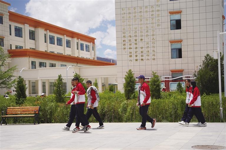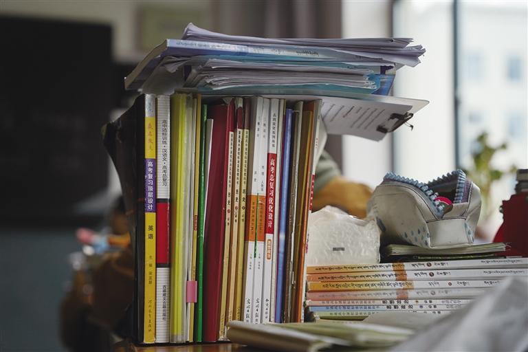 走進高三年級教學(xué)樓,走廊里不時傳來朗朗讀書聲,每一個角落都充斥著同學(xué)們?yōu)榍啻汉蛪粝電^力拼搏的氣息。在高三(9)班的教室里,學(xué)生們正在全神貫注地聽課,時而看課本、時而做筆記,神情認(rèn)真且專注。桌面上堆積的高高的書籍、練習(xí)冊和教室墻上掛著的高考倒計時牌都在時刻提醒著同學(xué)們,高考離他們越來越近了。“現(xiàn)在是高考復(fù)習(xí)的關(guān)鍵時期,同學(xué)們學(xué)得很認(rèn)真,班里的學(xué)習(xí)氛圍特別好,大家互相幫助、共同進步。希望我們通過自己的努力,考上理想的大學(xué),實現(xiàn)自己的夢想?!睂W(xué)生斯朗卓瑪告訴記者。