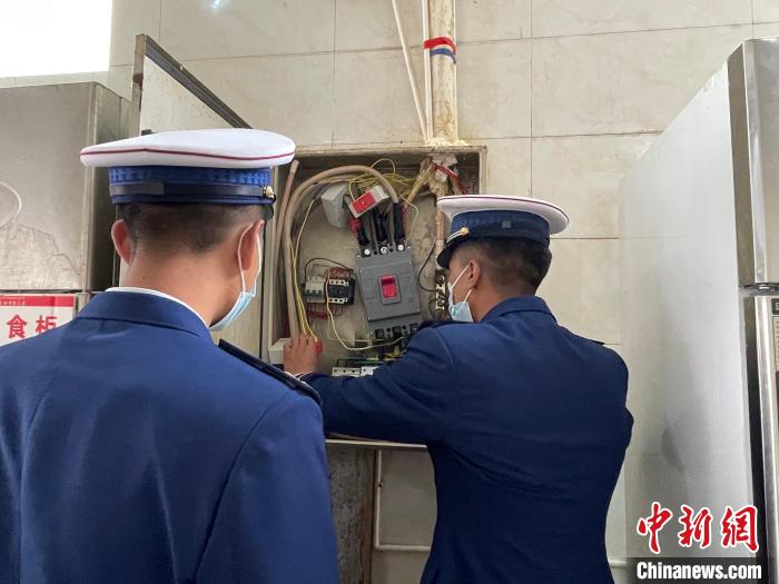 圖為消防指戰(zhàn)員檢查消防重點(diǎn)部位??ㄈ魠^(qū)森林消防中隊(duì) 攝
