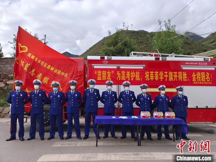 圖為消防指戰(zhàn)員為考生設(shè)立志愿服務(wù)點(diǎn)。卡若區(qū)森林消防中隊(duì) 攝