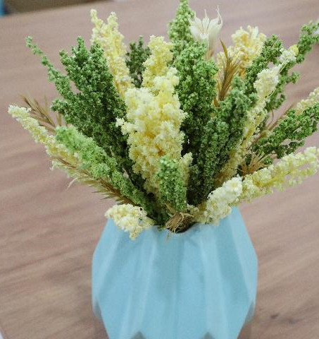 陳俊璋和公司團(tuán)隊研發(fā)打造的藜麥永生花。新華社記者 文靜 攝