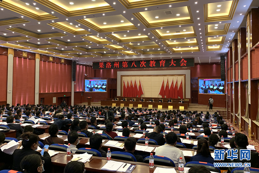 7月11日,果洛州第八次教育大會現(xiàn)場。新華網(wǎng) 馬洪婷 攝