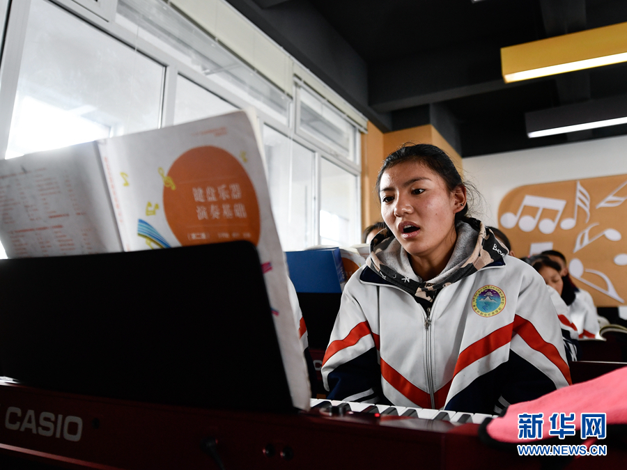在果洛藏族自治州職業(yè)技術學校,2020級學前教育專業(yè)學生楊央在上音樂課。(資料圖)新華社記者 張龍 攝