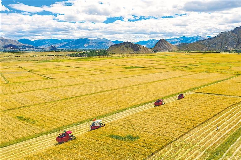 努力把資源優(yōu)勢轉(zhuǎn)化為發(fā)展優(yōu)勢,做大做強高原特色產(chǎn)業(yè),加快構建現(xiàn)代產(chǎn)業(yè)體系。2012年至2021年,城鎮(zhèn)居民和農(nóng)村居民人均可支配收入分別從18362元、5698元增長至46503元、16932元。圖為西藏自治區(qū)江孜縣紫金鄉(xiāng)青稞種植喜獲豐收。