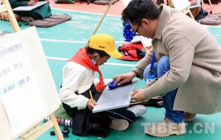 圖為西藏自治區(qū)那曲市比如縣羊秀鄉(xiāng)的學生正在創(chuàng)作美術作品 攝影:米瑪旺久