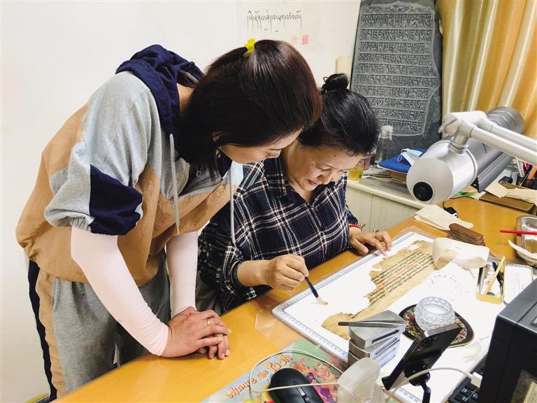 2015年自治區(qū)古籍修復(fù)中心成立以來(lái),在國(guó)家圖書館和云南省圖書館等專業(yè)修復(fù)中心接受培訓(xùn)實(shí)踐的修復(fù)人員積極投入到藏文古籍修復(fù)工作中,相繼完成了拉薩市墨竹工卡縣芒熱寺破損古籍的修復(fù)任務(wù),修復(fù)古籍文獻(xiàn)共248葉,拍攝建檔496幅圖片,并把這部分完成修復(fù)的古籍文獻(xiàn)同目錄按正規(guī)程序移交給寺廟。完成了對(duì)山南市隆子縣加玉鄉(xiāng)強(qiáng)慶村白嘎寺的237函、3萬(wàn)多葉的珍貴古籍文獻(xiàn)的整理、建檔和拍攝書影等工作。同時(shí)啟動(dòng)了7000多葉破損古籍的修復(fù)工作,截至目前已完成4420葉破損古籍的修復(fù),為進(jìn)一步做好傳統(tǒng)古籍文獻(xiàn)的再利用和原生性保護(hù)給予了有力保障。