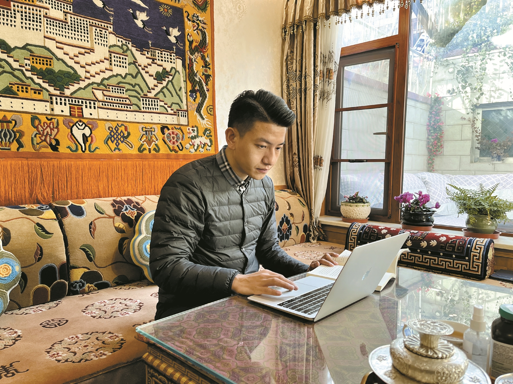 冬日午后,記者在家中見到丹臻群佩時,他正在認真品讀《如何講好中國故事》一書。作為清華大學新聞與傳播學院的一名博士生,他正在思考如何用中國的話語、中國的智慧、中國的方案,結合西藏特色、拉薩特點,把民族團結故事講好,并且講出去。