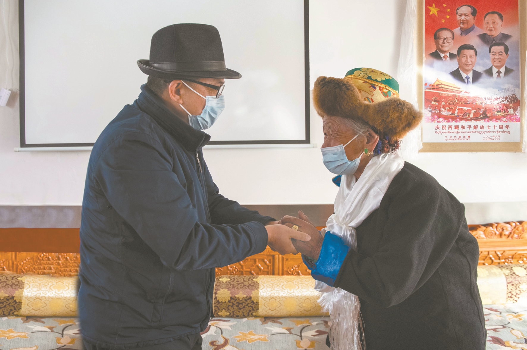 藏歷新年臨近,城關(guān)區(qū)特困人員集中供養(yǎng)中心內(nèi)暖意融融,在工作人員的悉心照料下,老人們幸福地安享晚年生活。“新年快樂(lè)、扎西德勒”,帶著黨和政府的關(guān)懷與溫暖,王強(qiáng)為老人們敬獻(xiàn)哈達(dá),致以節(jié)日美好祝福,關(guān)切地詢問(wèn)老人們的飲食起居和身體狀況,語(yǔ)重心長(zhǎng)地告訴大家黨的光輝照邊疆,要飲水思源,聽(tīng)黨話、感黨恩、跟黨走,保重身體、樂(lè)享晚年。