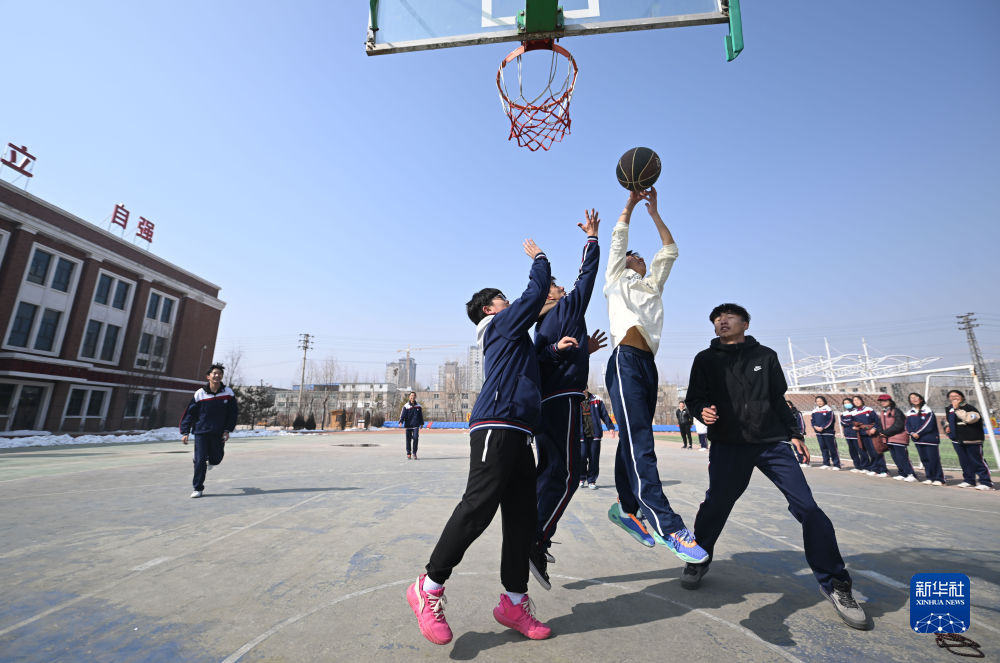 2月23日,西寧果洛中學(xué)學(xué)生在體育課上打籃球。新華社記者 張龍 攝