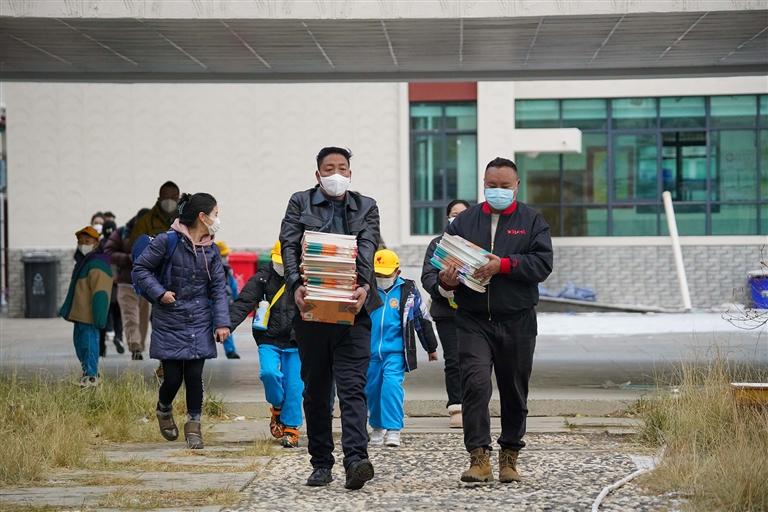 在拉薩市第八中學(xué)校門(mén)口,學(xué)生們滿懷希冀與欣喜,來(lái)到闊別已久的校園,校園內(nèi)恢復(fù)了往日的熱鬧。學(xué)生們?cè)诩议L(zhǎng)的陪同下背著行囊,拖著行李箱回到各自寢室。衛(wèi)生大掃除是必不可少,他們對(duì)床鋪和個(gè)人用品進(jìn)行了整理。隨后,同學(xué)們有序完成了新書(shū)本的領(lǐng)取,感受著翻開(kāi)書(shū)本泛出的陣陣墨香。與自己的姓名一起簽在書(shū)本扉頁(yè)的還有新學(xué)期的美好愿景。