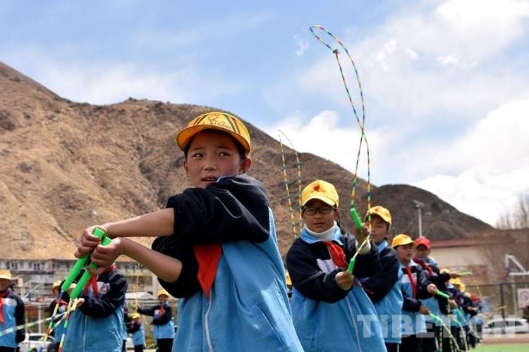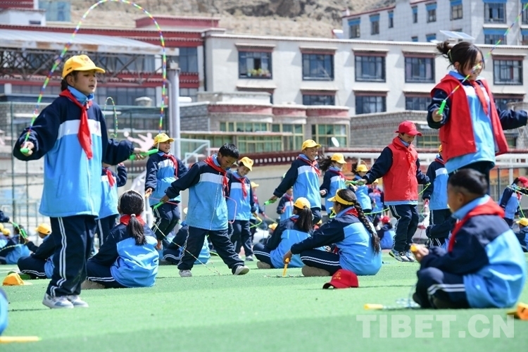 圖為活動現(xiàn)場學生在學跳繩 攝影:次旦拉姆