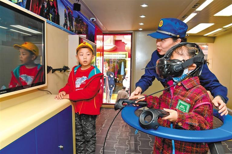 消防隊員借助VR模擬系統(tǒng),為孩子們講解防火防災(zāi)知識。記者 丹增群培 攝