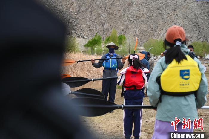圖為皮劃艇教練向體驗(yàn)者講授皮劃艇操作技術(shù)?!≮w朗 攝