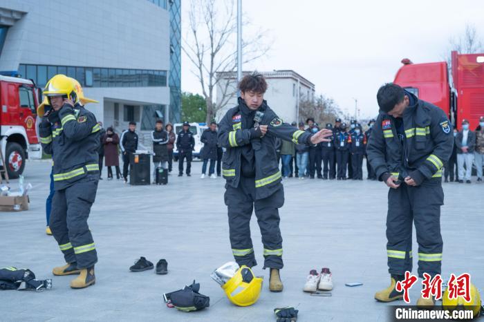 圖為消防員為學(xué)生講解消防器材?!∝暩聛?lái)松 攝