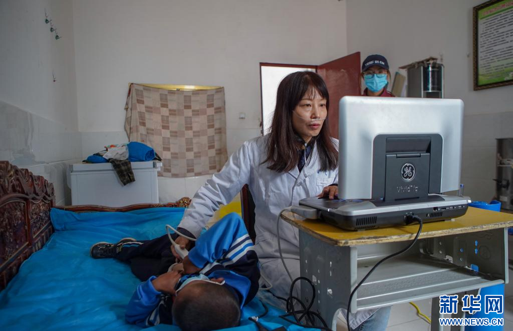 7月4日,江蘇省援藏醫(yī)療隊(duì)醫(yī)生陳晴玉在給疑似患兒做心臟彩超。(新華社記者 邵澤東 攝)