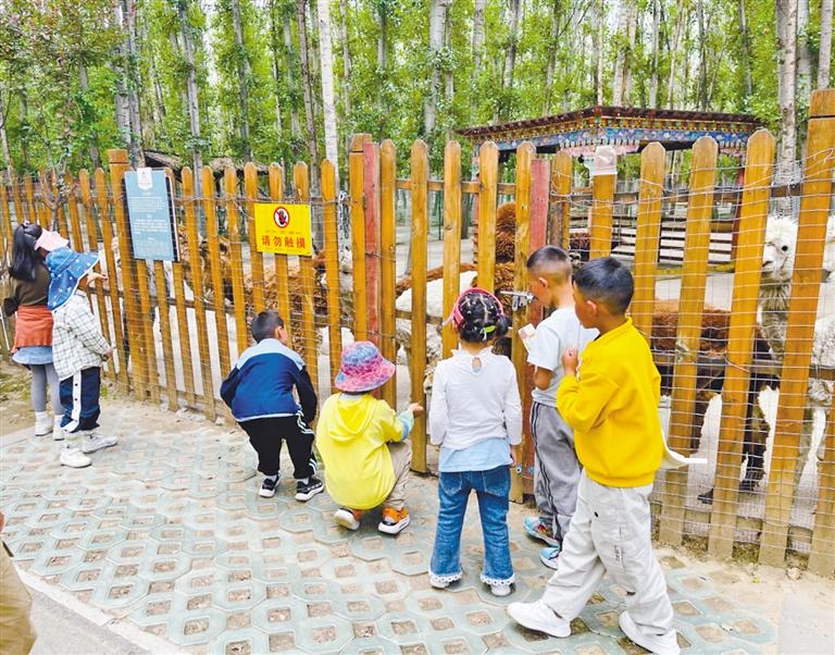 圖為孩子們在曲水縣動物園游玩。 記者 格桑倫珠 攝