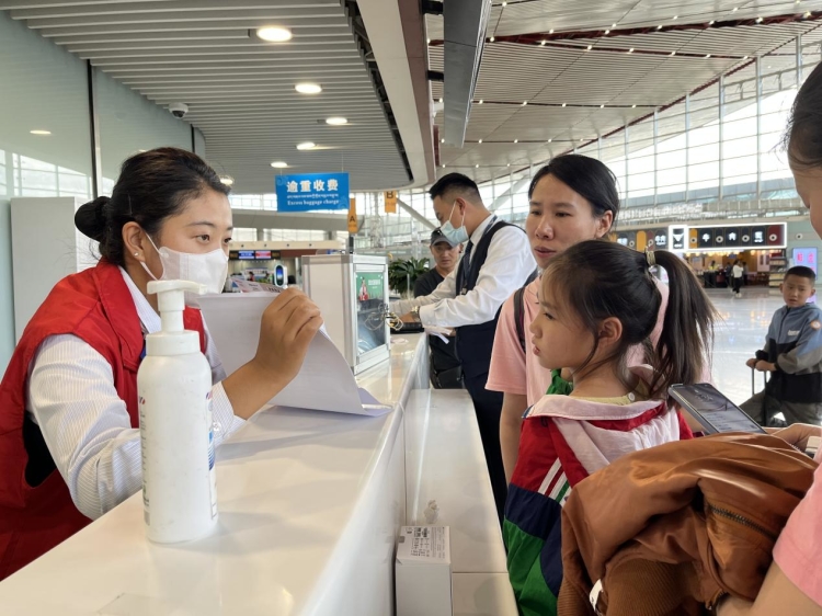 同時,拉薩貢嘎機場為滿足“暑運”期間旅客多樣化出行需求,以便民、惠民、利民為出發(fā)點,先后推出“首次乘機、無憂暢行”的首乘服務(wù)、“交流無邊界,服務(wù)零距離”的漢藏雙語服務(wù)、“無陪兒童”“無陪老人”服務(wù)、快線專屬中轉(zhuǎn)值機服務(wù)、自助行李托運服務(wù)、逾重行李收費電子化服務(wù)等便民舉措,有效提升了旅客出行體驗。針對暑期航班密集、出現(xiàn)人流“井噴”,拉薩貢嘎機場在高峰時期加強保障人員力量,增添機關(guān)突擊隊志愿人員,及時管控、主動引導(dǎo)、耐心解答。在車水馬龍、人頭攢動的航站樓內(nèi),“志愿紅”們用最美微笑和貼心服務(wù)為出行旅客送去一縷清涼。