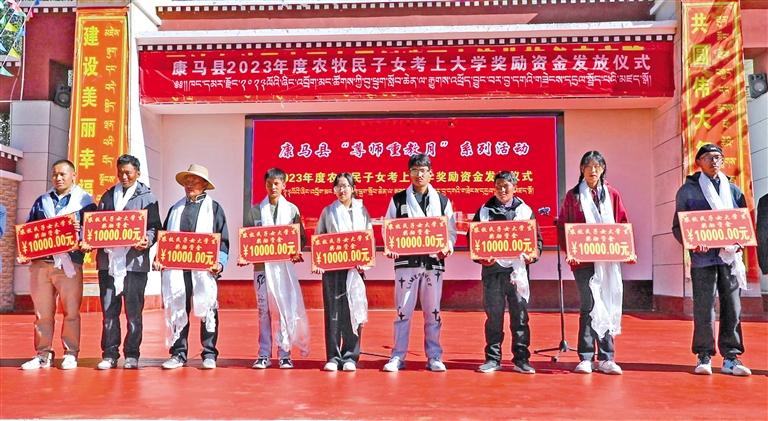 9月16日,日喀則市康馬縣舉辦2023年度農(nóng)牧民子女考上大學(xué)獎(jiǎng)勵(lì)資金發(fā)放儀式,共為考取本科院校的151名學(xué)生、考取專科院校的124名學(xué)生兌現(xiàn)獎(jiǎng)勵(lì)資金166.5萬元。據(jù)統(tǒng)計(jì),康馬縣自2016年實(shí)施農(nóng)牧民子女考上大學(xué)獎(jiǎng)勵(lì)政策以來,共為1812名考上大學(xué)的康馬籍農(nóng)牧民子女應(yīng)屆高中畢業(yè)生兌現(xiàn)獎(jiǎng)勵(lì)資金1477.1萬元,助力廣大康馬籍農(nóng)牧民子女實(shí)現(xiàn)大學(xué)夢想。
