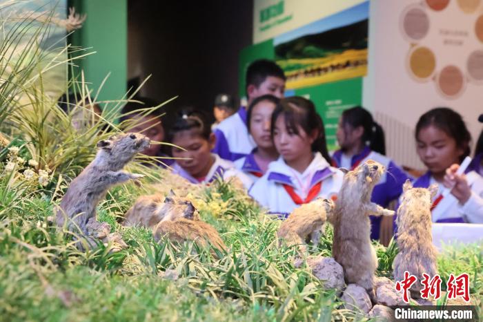 圖為青海省西寧市大通縣的青少年了解藏羚羊、雪豹等高原生物知識(shí)。張?zhí)砀?攝