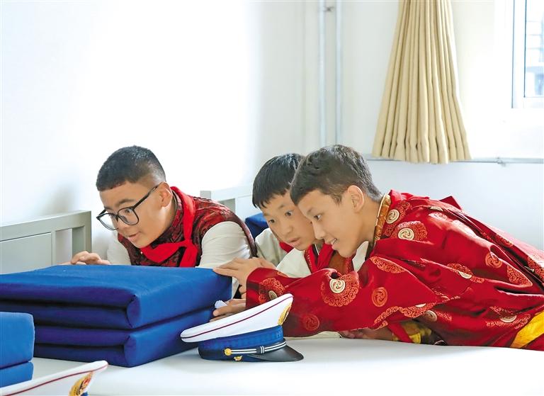 學(xué)生觀摩內(nèi)務(wù)被。記者 胡文 通訊員 西繞拉翁 袁勇彬 攝