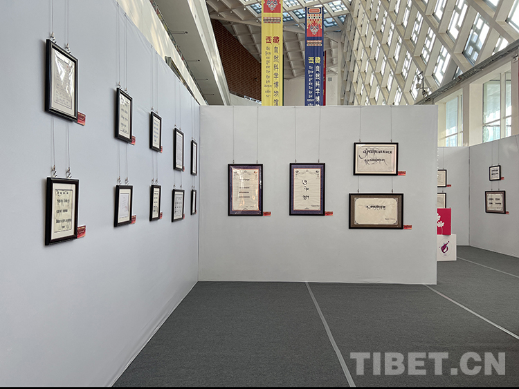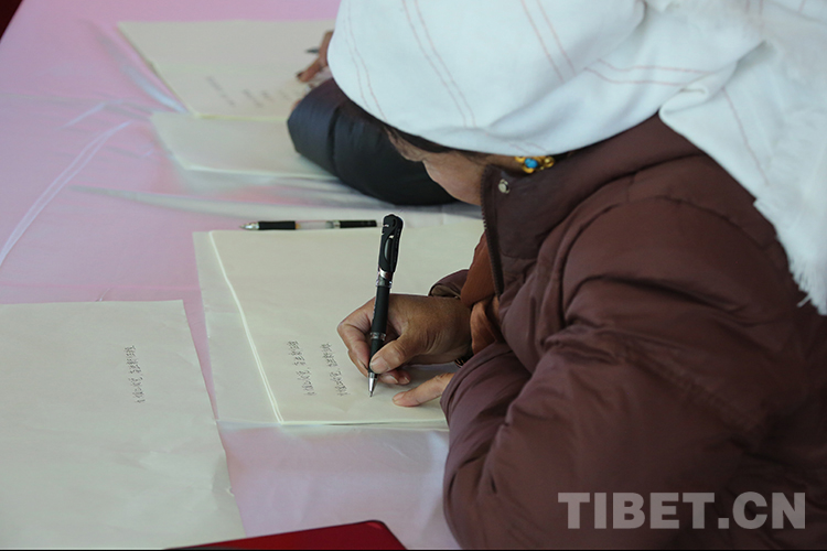 圖為書法比賽獲獎(jiǎng)代表現(xiàn)場進(jìn)行了漢藏書法書寫展示。攝影:德吉卓瑪