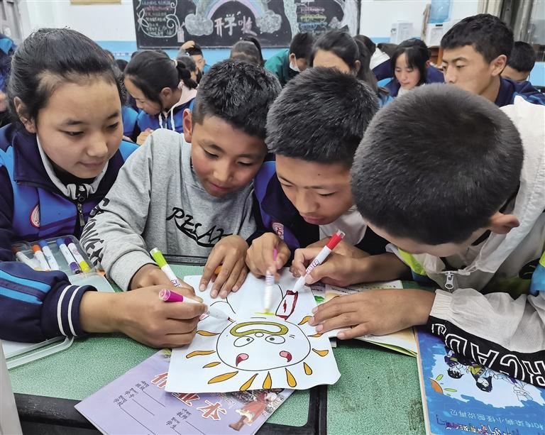 “之前從來沒有想過自己的情緒可以被畫出來,剛開始一直擔(dān)心自己畫得好不好看,但是當(dāng)我跟著音樂靜下心、拿起畫筆的那一刻,就不再糾結(jié)了。通過畫畫這種形式把自己內(nèi)心的想法表達(dá)出來,讓壓力得到釋放,很適合我們現(xiàn)在這個階段。我很喜歡這個課程,希望它可以一直開設(shè)下去。”拉巴卓瑪告訴記者。