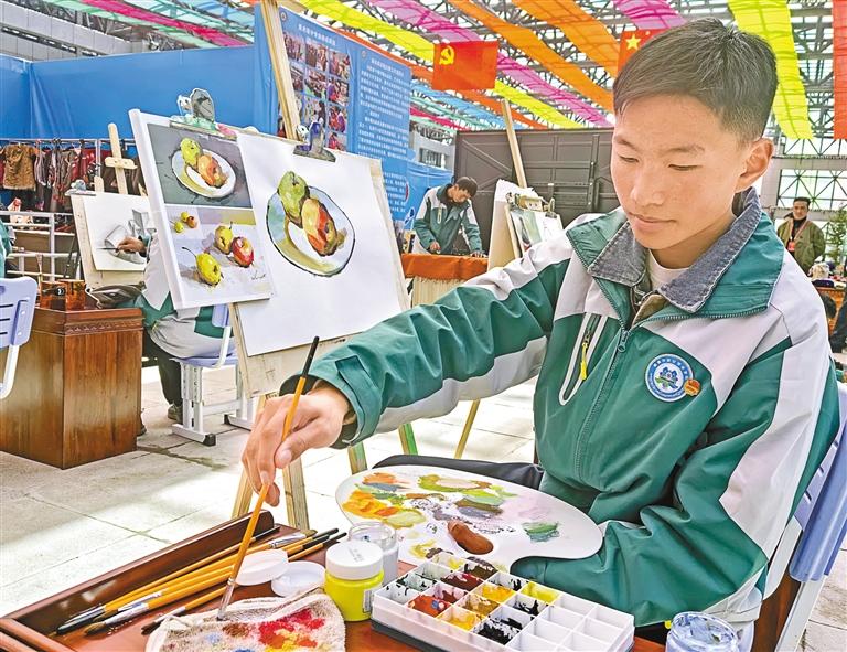 圖為那曲市職業(yè)技術(shù)學(xué)校的學(xué)生在進行繪畫創(chuàng)作。記者 萬靖 攝